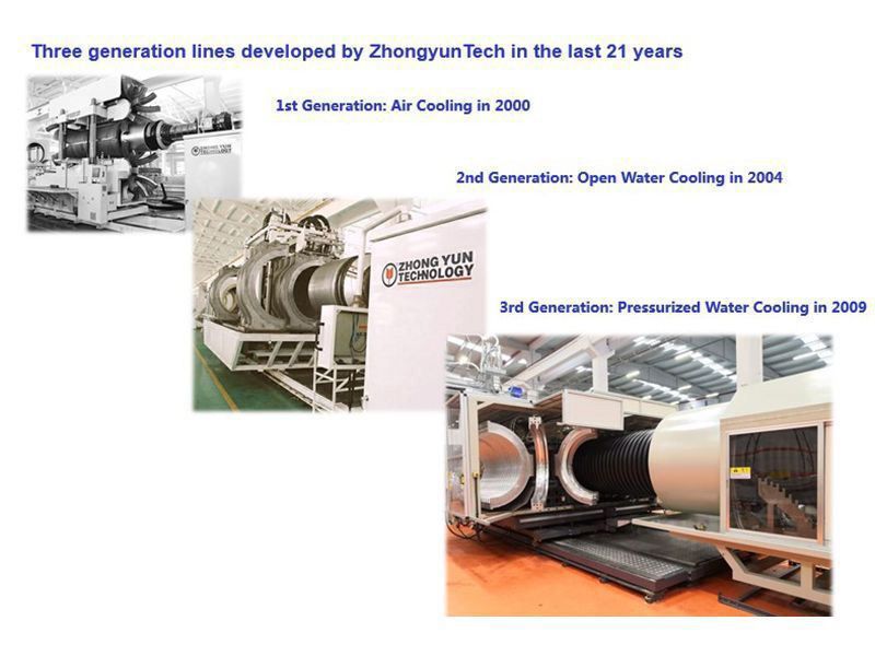 Consciente de la necesidad de las empresas de mantenerse a la vanguardia en un mercado competitivo, ZhongyunTech se compromete a mejorar continuamente nuestros servicios y máquinas para fabricar tubos corrugados. En los últimos 20 años, ZhongyuTech ha desarrollado tres generaciones de líneas de extrusión de tubos corrugados, como se muestra a continuación.