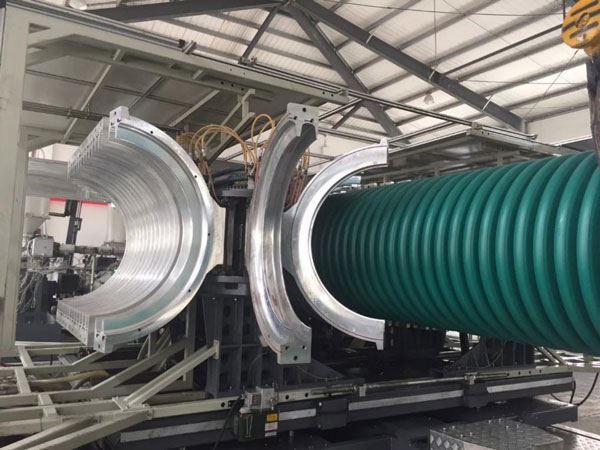 En el día de hoy en China, solo hay 2 corrugadores de tuberías más grandes que producen tuberías corrugadas de hasta diámetro interior de 1600mm / diámetro exterior de 2000mm en los talleres del cliente. Ambos son ZhongyunTech ZC-2000H en KMY Group.