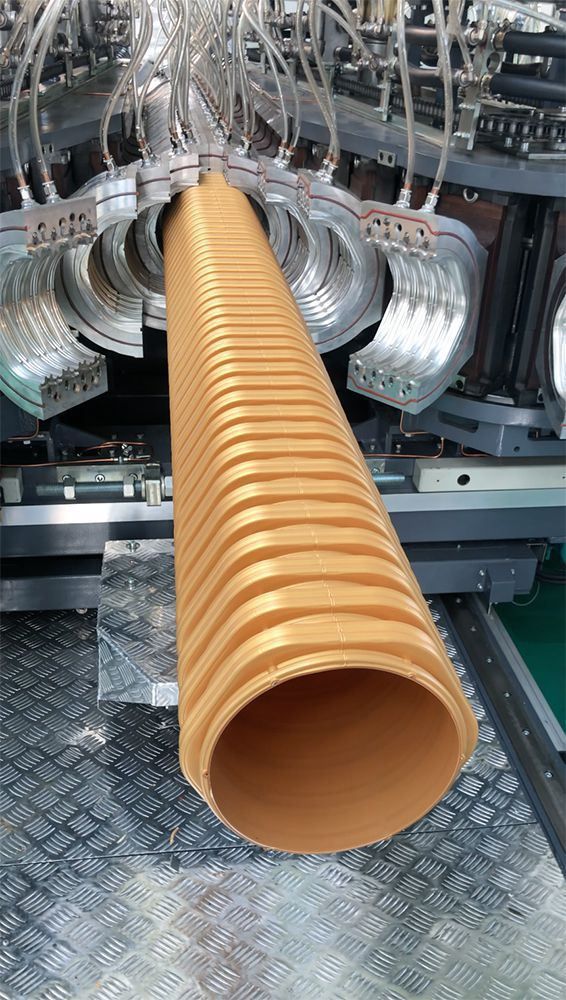 2007, Se desarrolló con éxito la primera máquina para tubos corrugados con bloques de moldes en China; esta máquina permite que los usuarios puedan producir tubos corrugados abocardados en cualquier longitud;