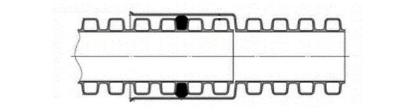 O bien mediante un proceso de moldeo por inyección o extrusión se forma un conector independiente que se tiene que soldar a los extremos del tubo corrugado. El moldeado y la soldadura de los conectores se pueden realizar en una sola máquina. Después de esto, se puede conectar la tubería insertando una espita con un anillo de caucho. Este tipo de conexión puede proporcionar conexiones de tubería sólidas.